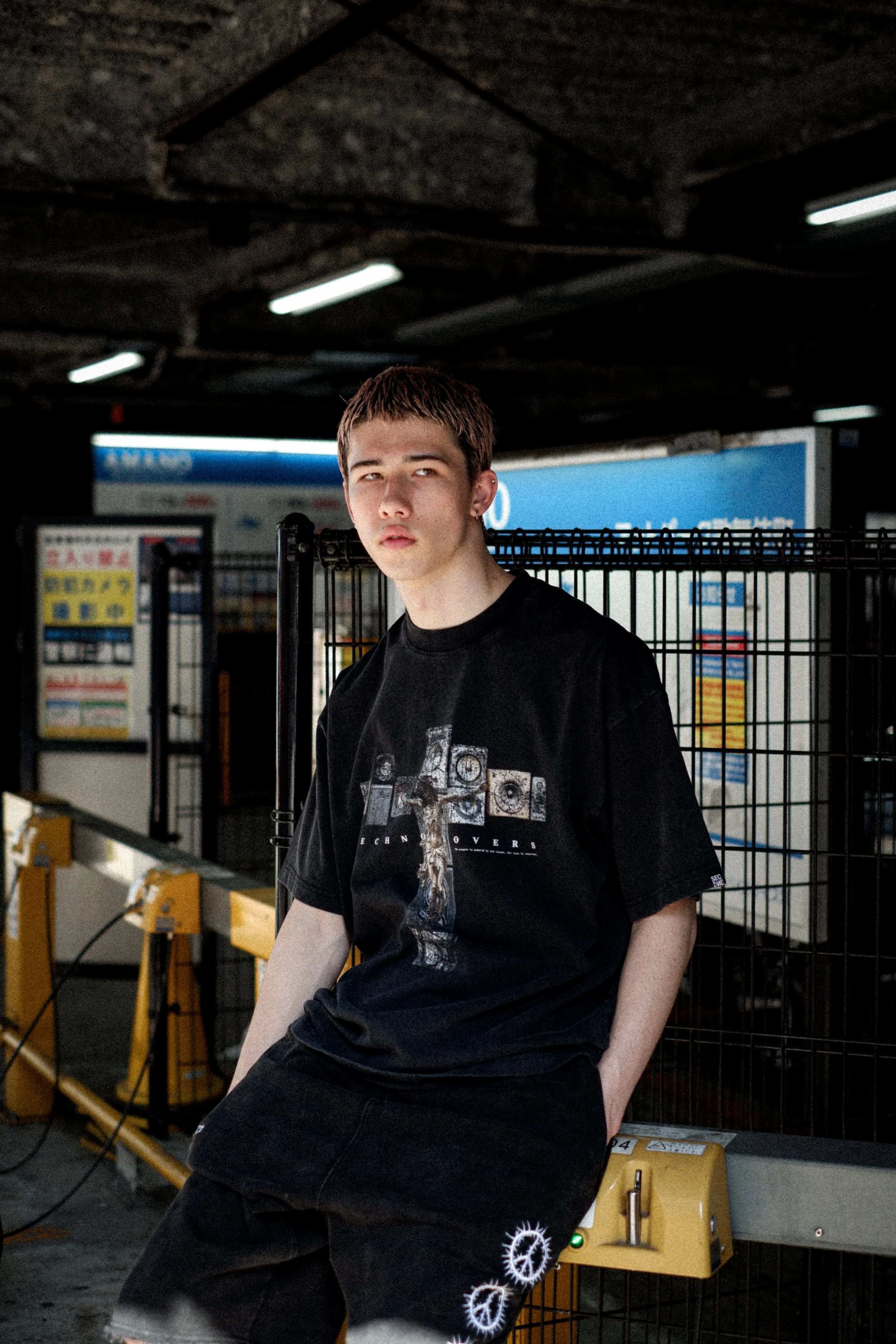 "JESUS LOVES TECHNO" WASHED T-SHIRT